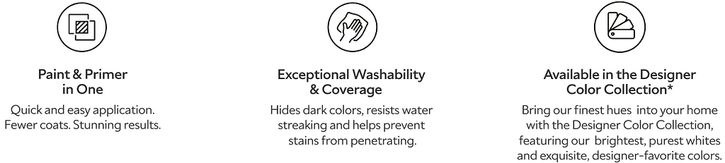 - Paint and Primer in one for true one-coat coverage over many colors