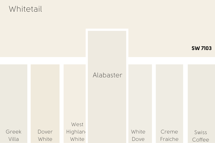 Don’t forget that light plays a big role in how Whitetail looks. Natural light throughout the day can change the color slightly. Sherwin-Williams also offers different sheens, from flat to semi-gloss, which can further affect how the paint reflects light.