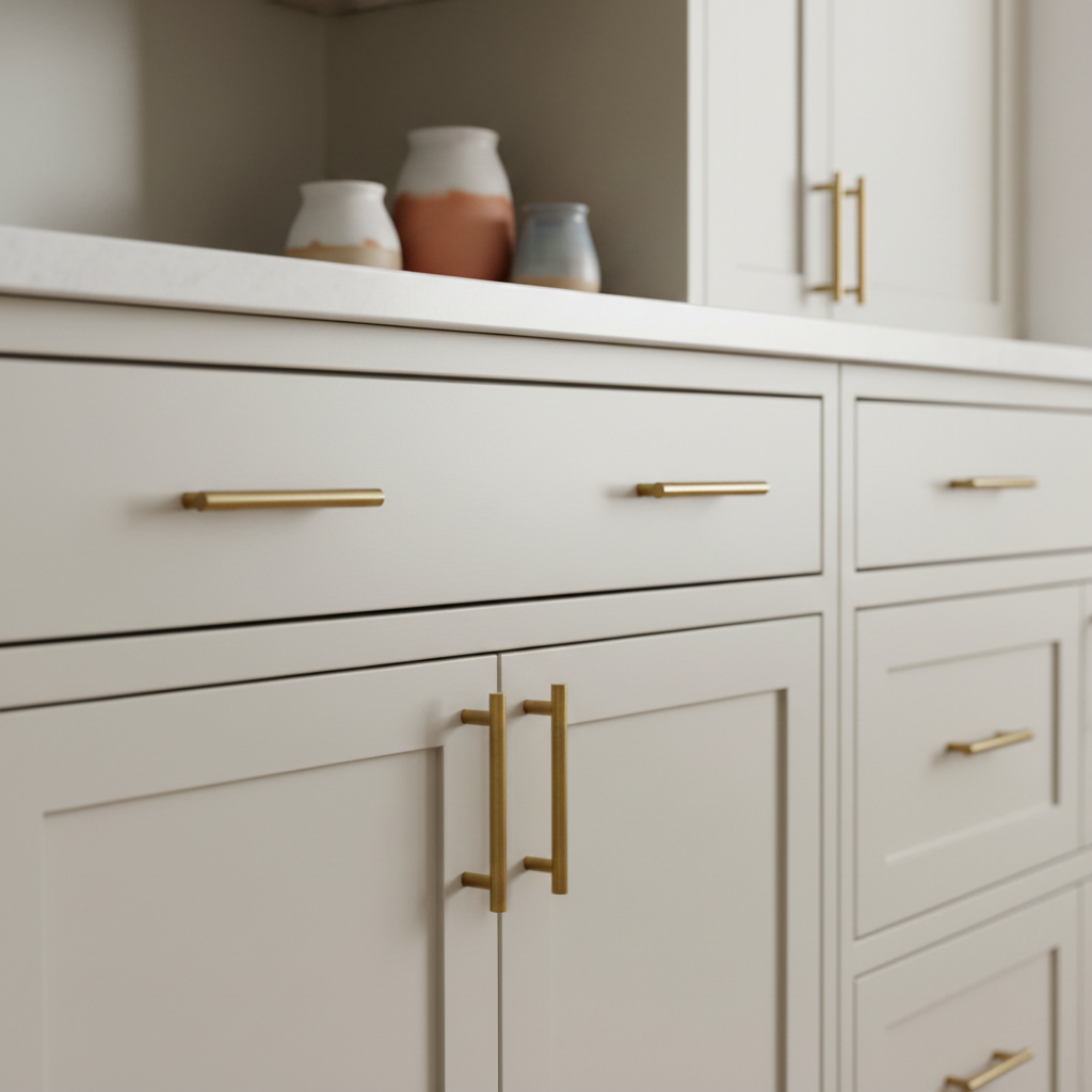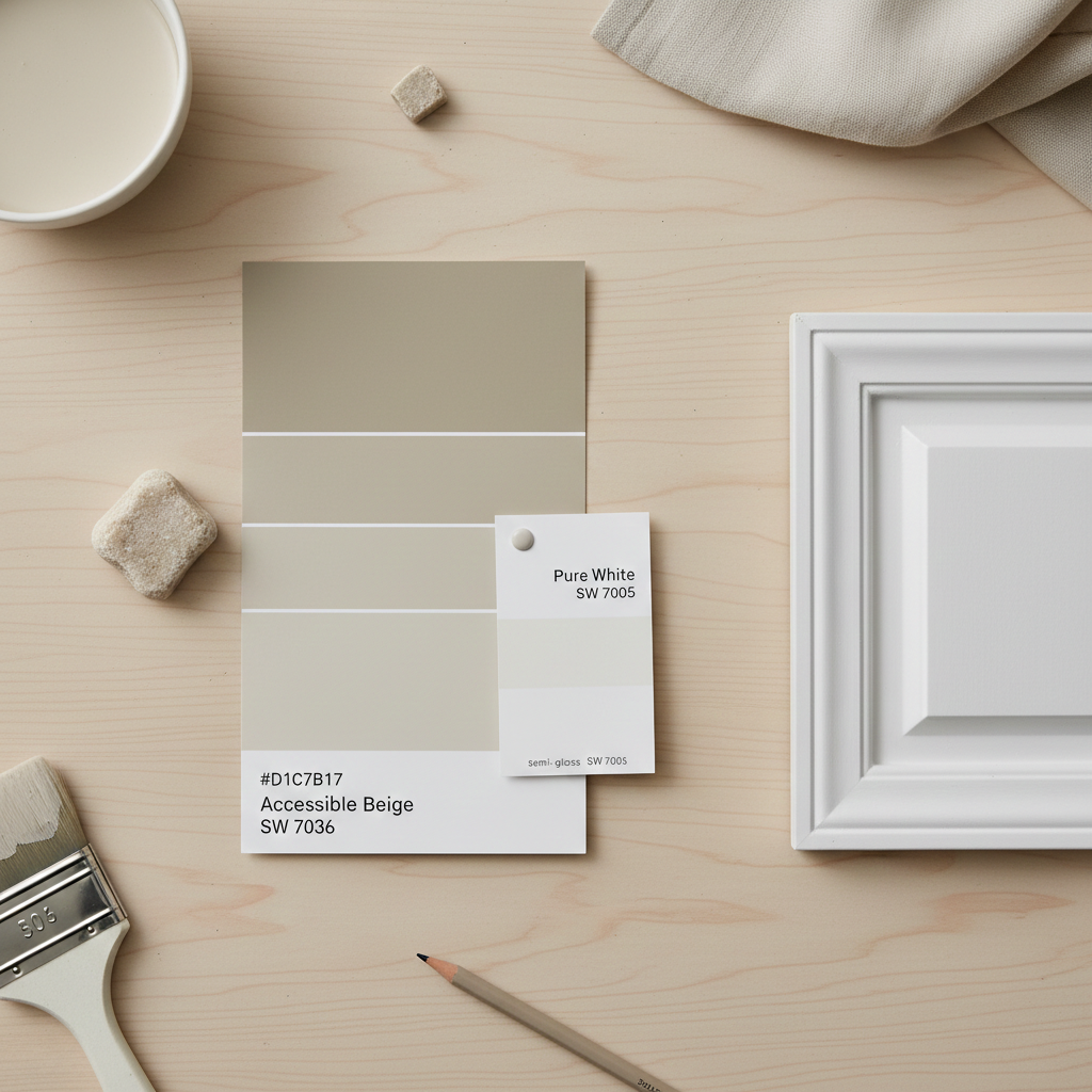 - Cabinetry and Millwork: Used on kitchen perimeter cabinets or built-in bookshelves, Accessible Beige softens the space while remaining clean. When used on interior trim against a crisp white wall, it introduces a subtle historic depth.