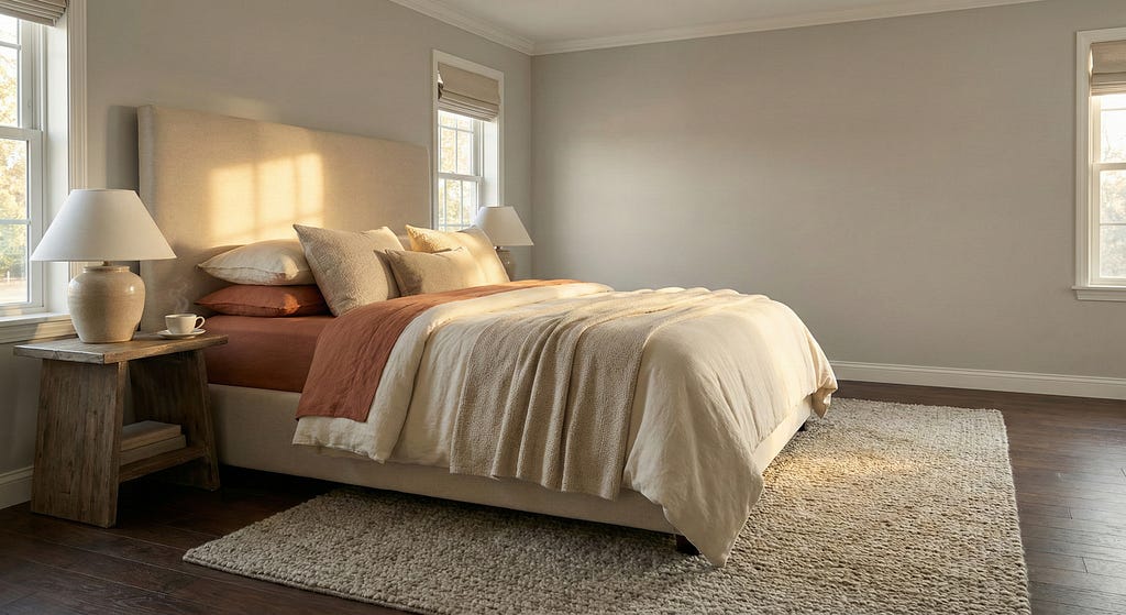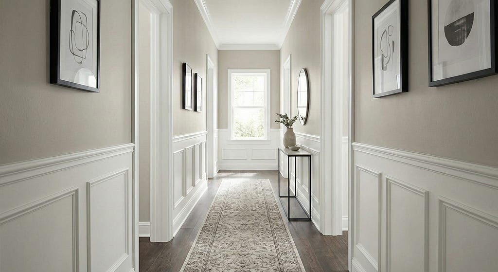 A creamier off-white trim pulls out the beige warmth, making the space feel seamless and cozy.